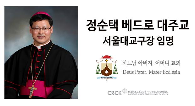 圣座新闻室网站于10月28日发布公告称,教宗方济各已接受首尔总教区总主教廉洙政枢机提出的辞呈,并已任命该总教区辅理主教郑淳泽(정순택,Peter Chung Soon-Taick)为新任总主教。
