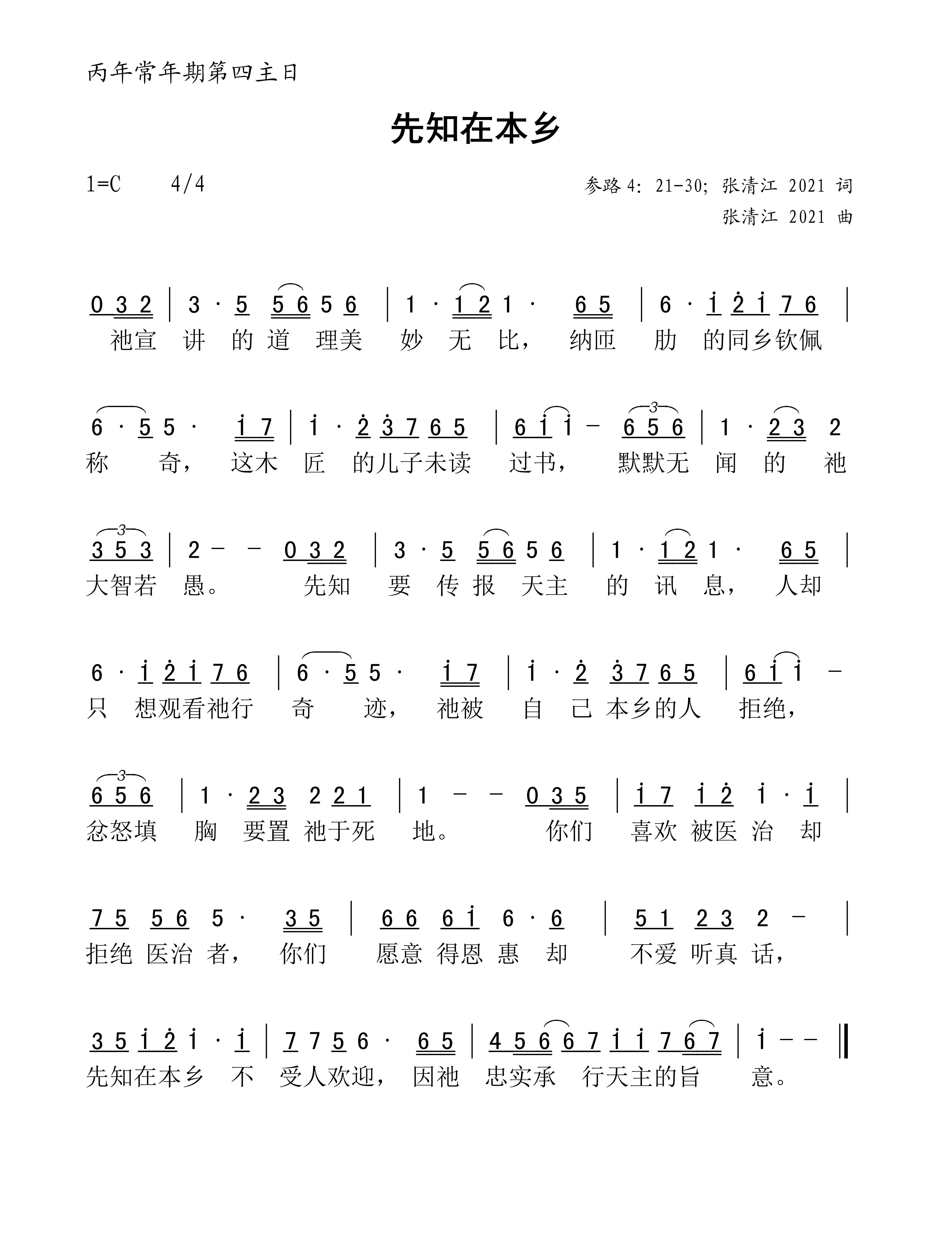 【主日赞歌】| 先知在本乡——丙年常年期第四主日